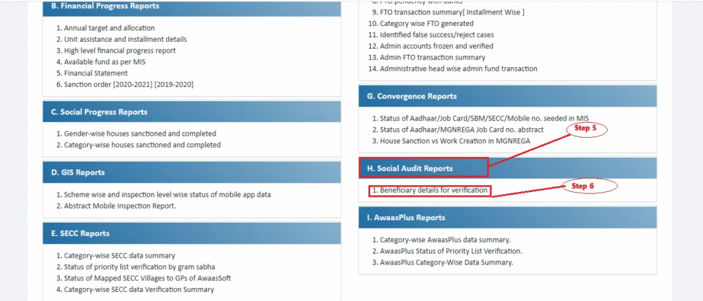 - rhreporting पेज पर जाने के बाद नीचे स्क्रॉल करते हुए Section H में Beneficiary Details For Verification पर क्लिक करे।